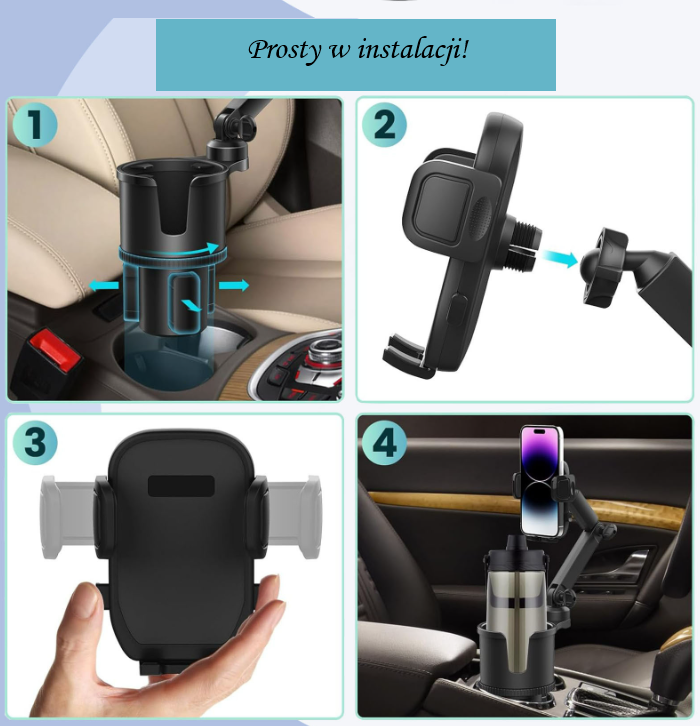 Praktyczny uchwyt samochodowy, który łączy funkcję stabilnego mocowania telefonu oraz miejsca na napój. Dzięki temu rozwiązaniu możesz bezpiecznie korzystać z nawigacji i mieć zawsze pod ręką kawę, butelkę wody czy kubek termiczny.