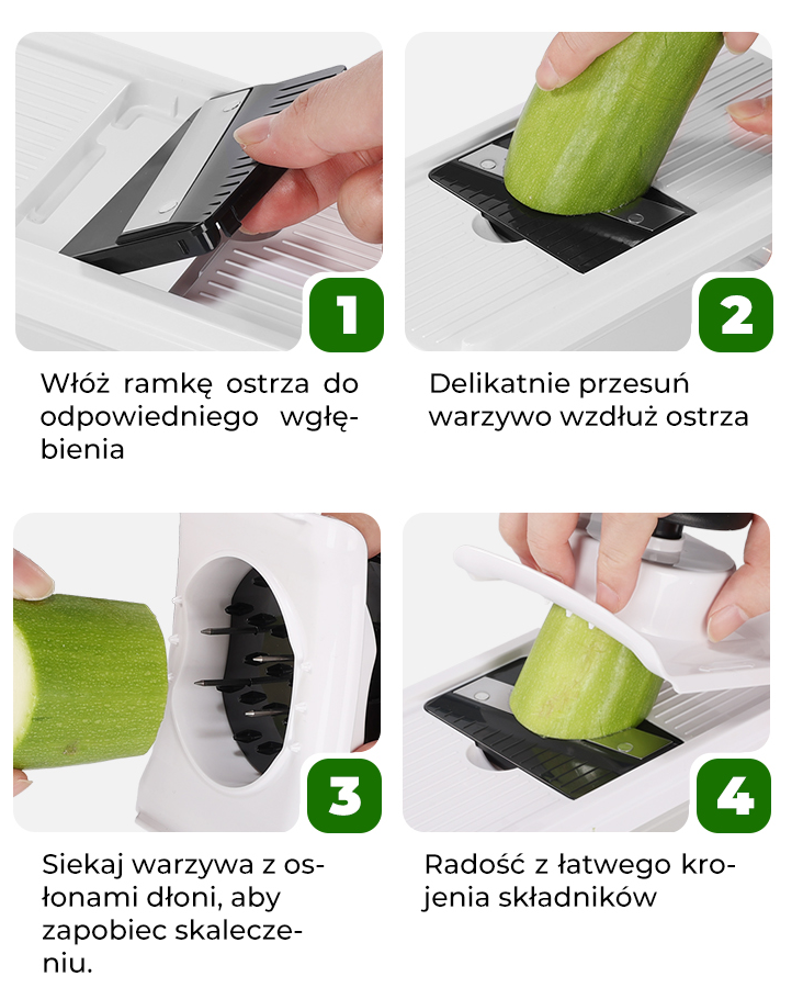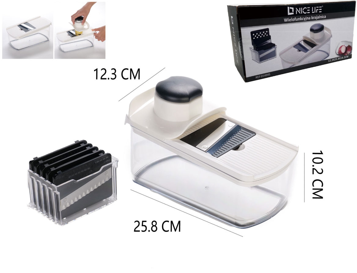 - W zestawie: krajalnica + wymienne ostrza + pojemnik