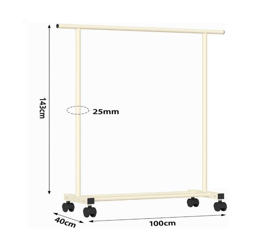 • Stabilna konstrukcja z rur o średnicy 25 mm – nie wygina się pod ciężarem ubrań.
