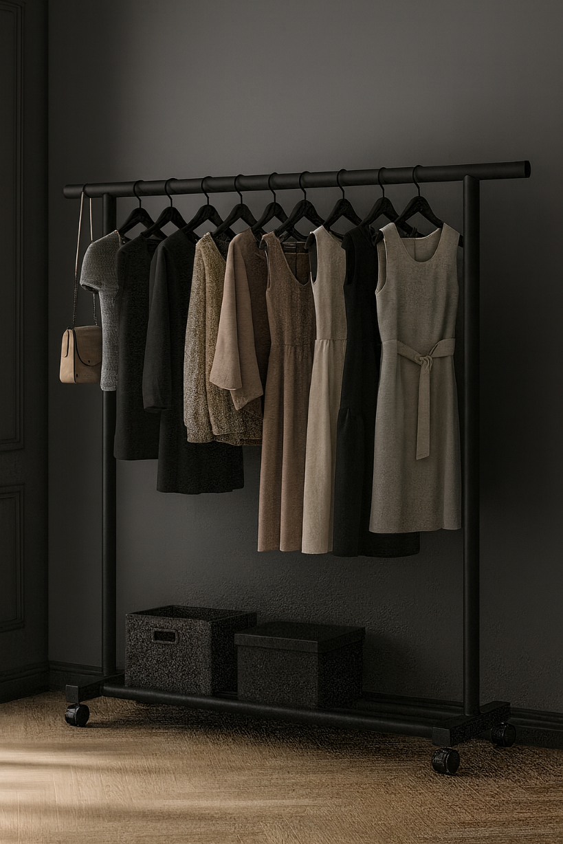 - Kółka – łatwo przesuniesz wieszak i ustawisz go tam, gdzie potrzebujesz.