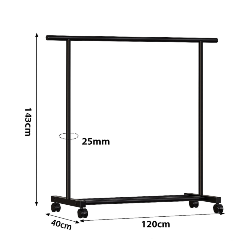 WIESZAK NA UBRANIA STOJĄCY NA KÓŁKACH 143×40×120 cm – CZARNY