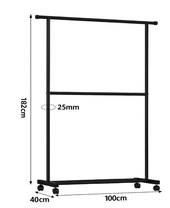 Wieszak na ubrania stojący podwójny na kółkach 182×40×100 cm – czarny