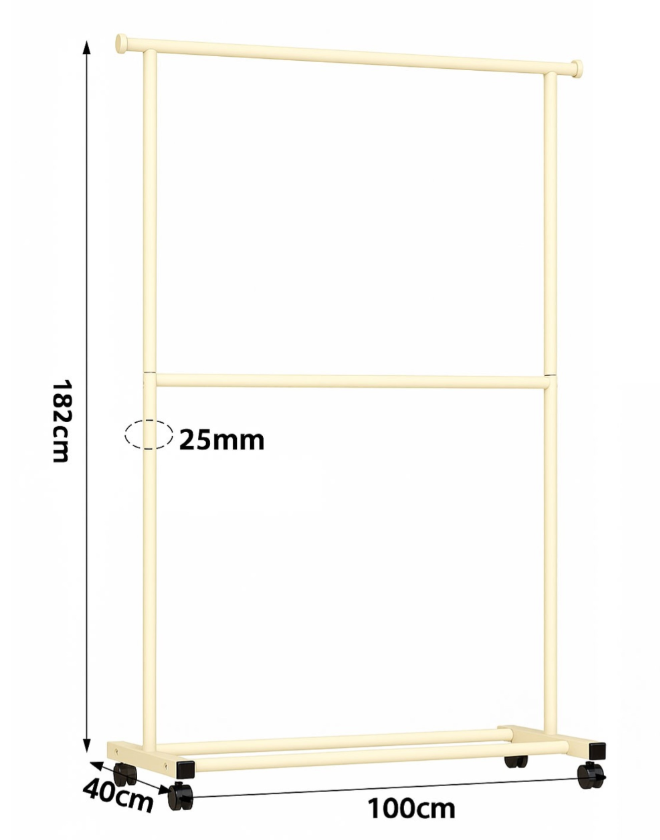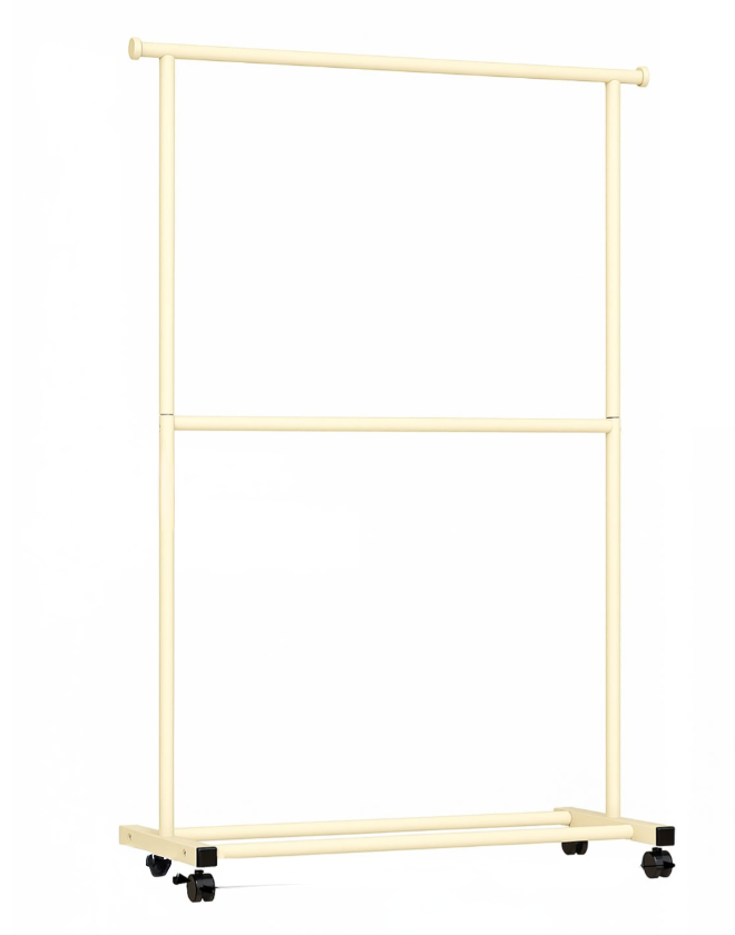 Wieszak na ubrania stojący podwójny na kółkach 182×40×100 cm – kremowy beżowy