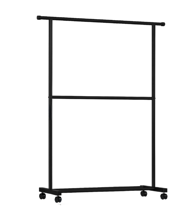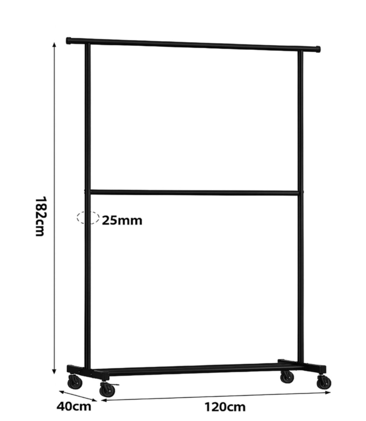 Wieszak na ubrania stojący podwójny na kółkach 182×40×120 cm – czarny