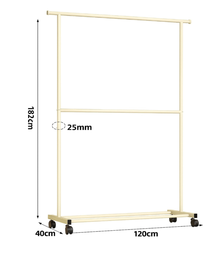 Wieszak na ubrania stojący podwójny na kółkach 182×40×120 cm – kremowy BEŻOWY