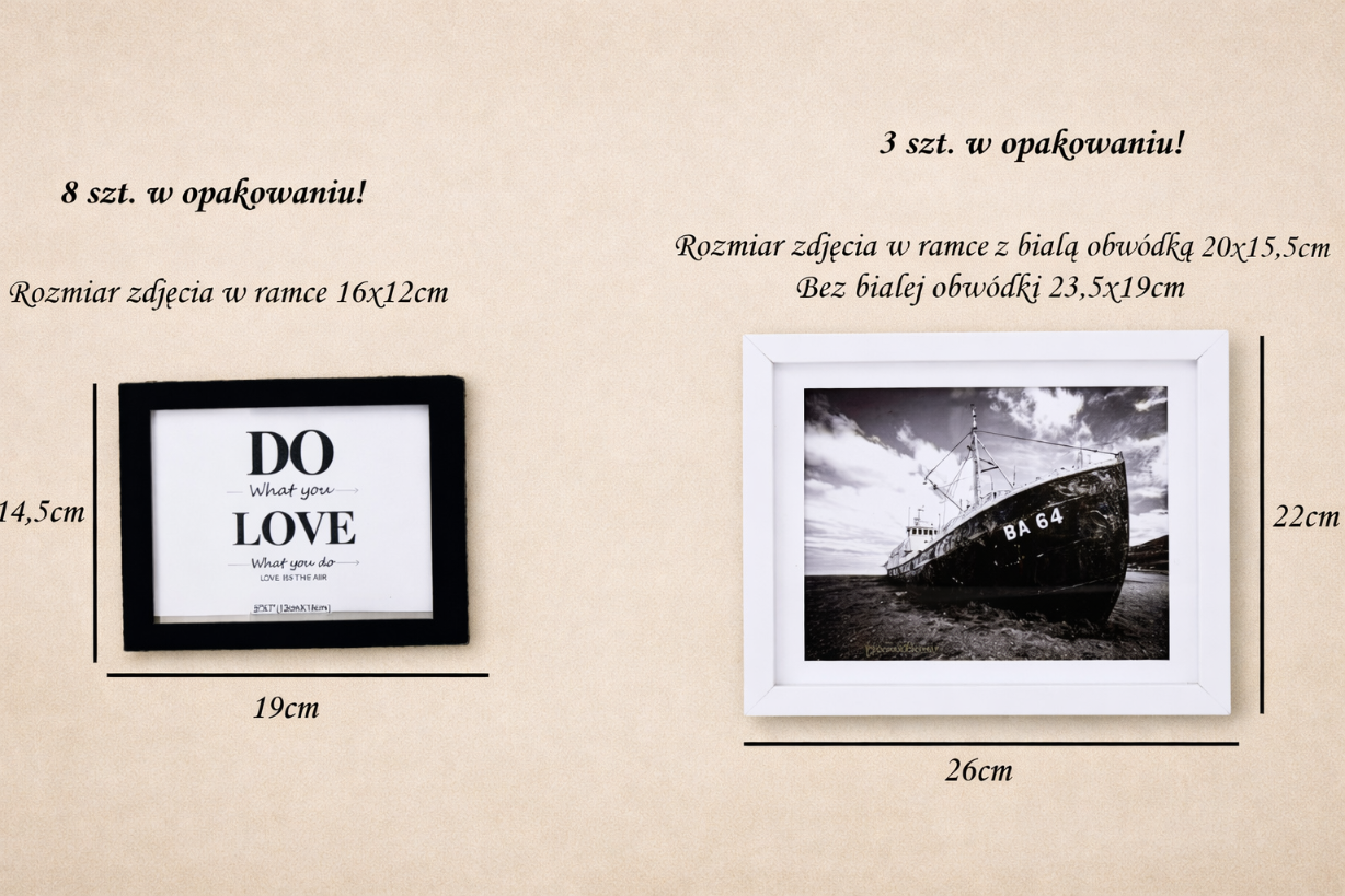 ZESTAW RAMEK NA ZJĘCIA 11szt. 16x12cm-23,5x19cm